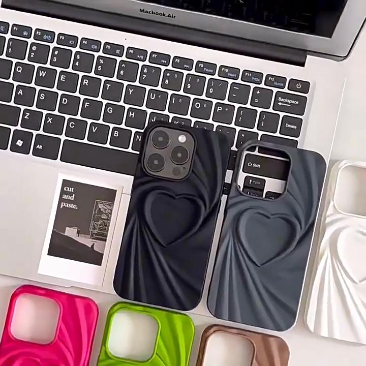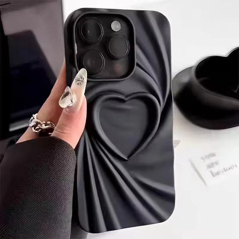Модный складной 3D чехол для телефона с сердечком для iPhone 13 14 15 Pro Max 16 Plus 11 12 ProMax, мягкий матовый силиконовый чехол с полным покрытием