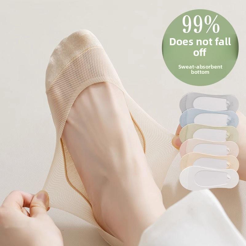 5 пар женских летних тонких нескользящих носков-лодочек с летним одинарным носком Ice Silk с мелким носком и невидимыми носками — купить товар онлайн с бесплатной доставкой по всему миру!