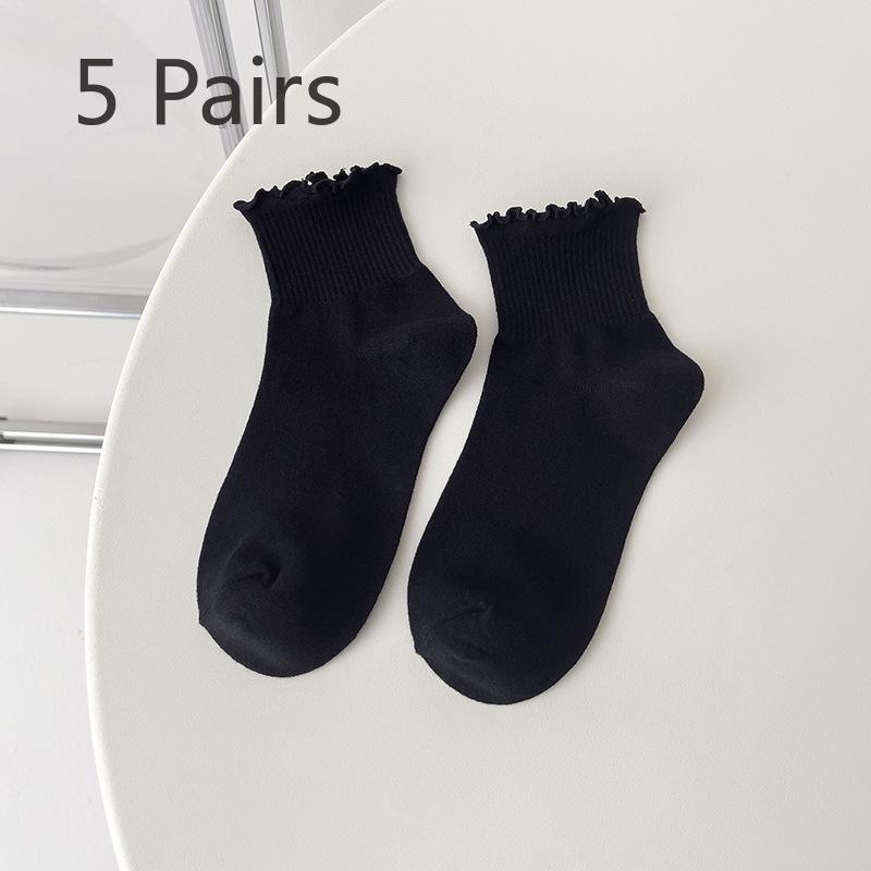 5 пар носков с деревянными ушками по бокам, женские летние короткие носки-трубы с кружевом, весенние и осенние носки, носки Tide