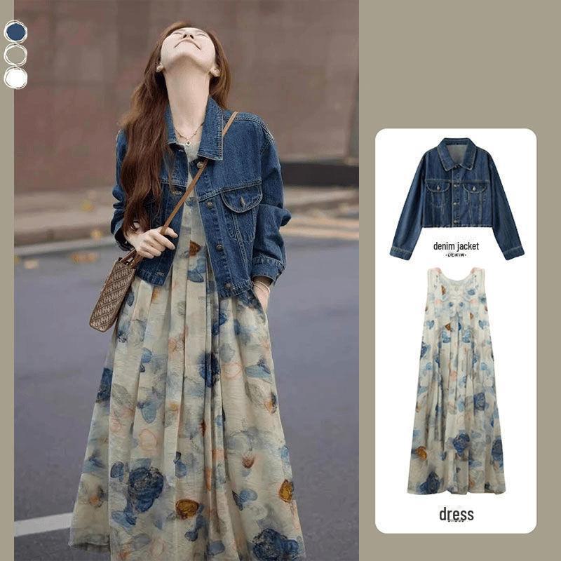 Комплект платьев с цветочным рисунком маслом весна 2025 года - модный, элегантный, бросающий вызов возрасту