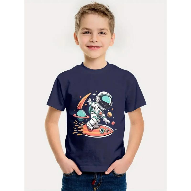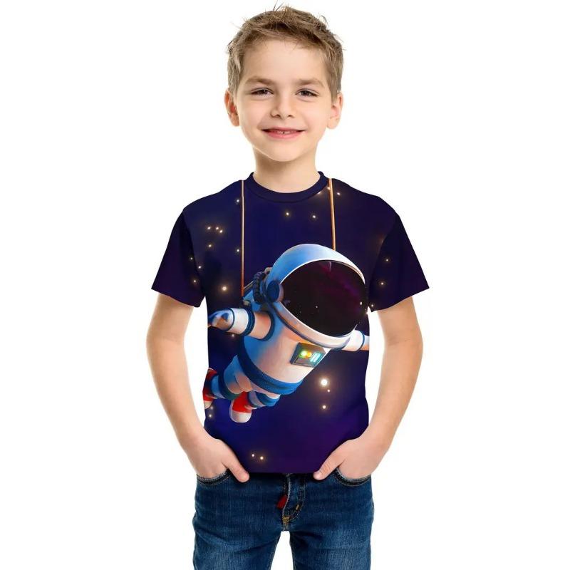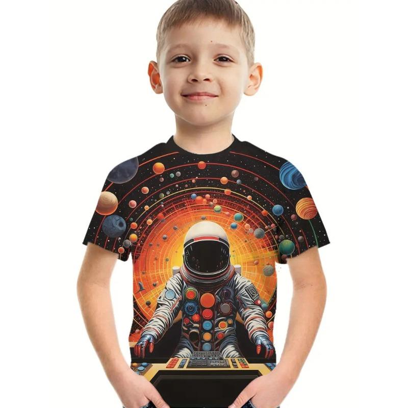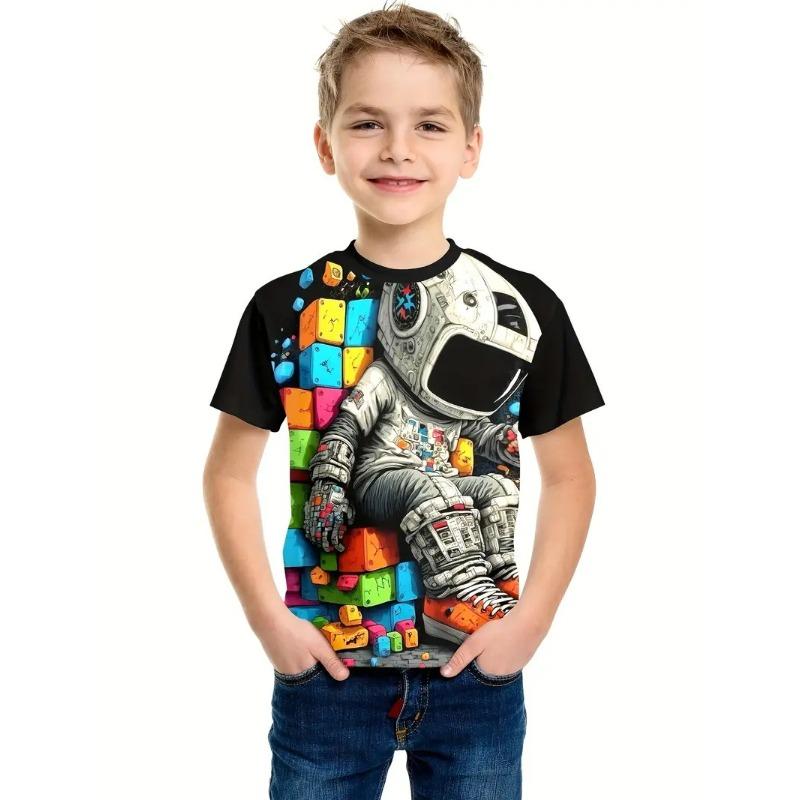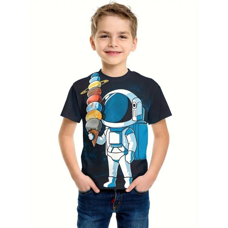 Летний топ с круглым вырезом и принтом 3D-астронавта, модные и повседневные детские футболки с короткими рукавами для мальчиков