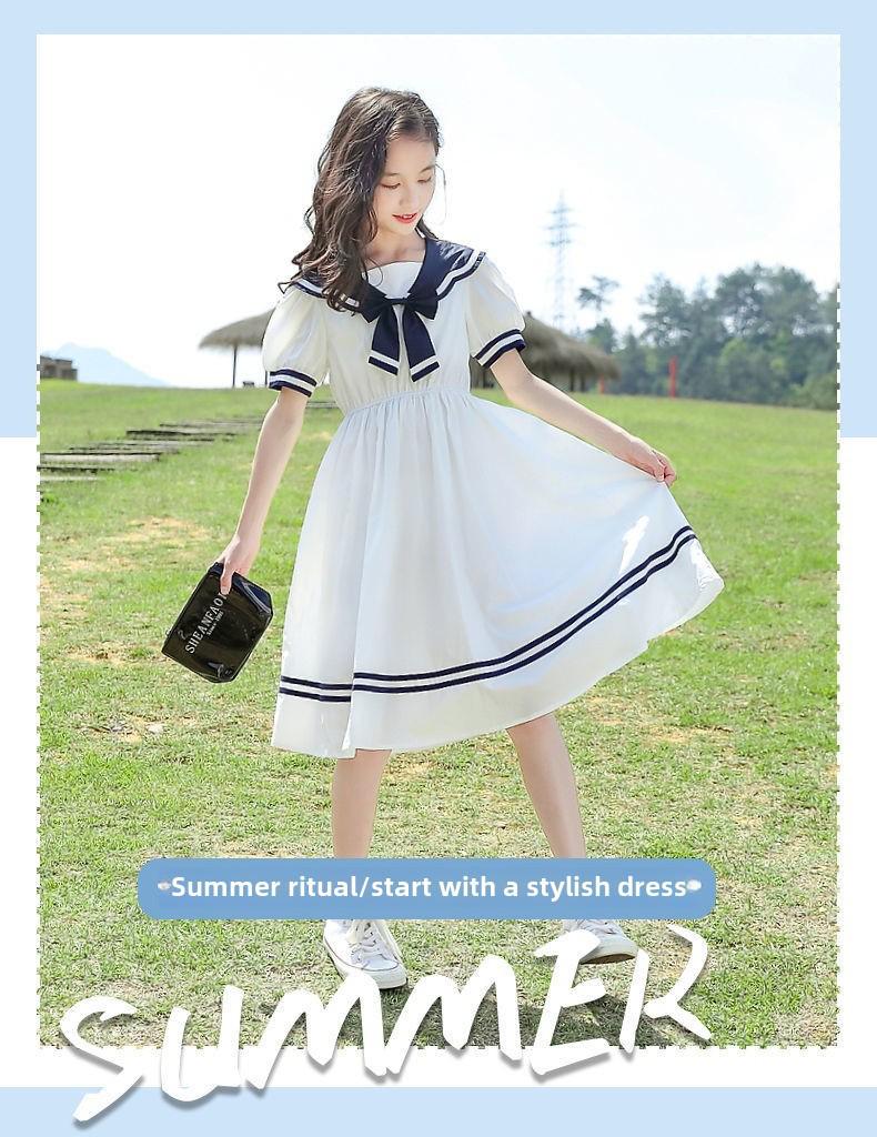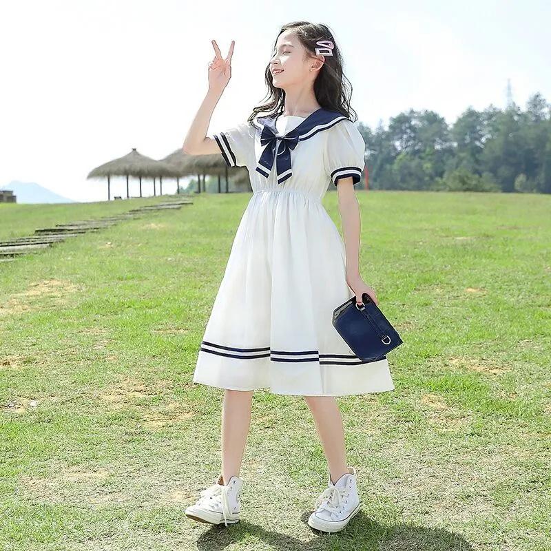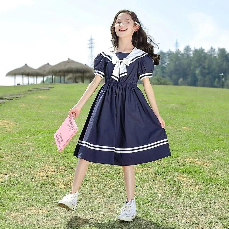 Стильное летнее платье принцессы для девочек - юбка с рукавами-фонариками для детей среднего и большого возраста