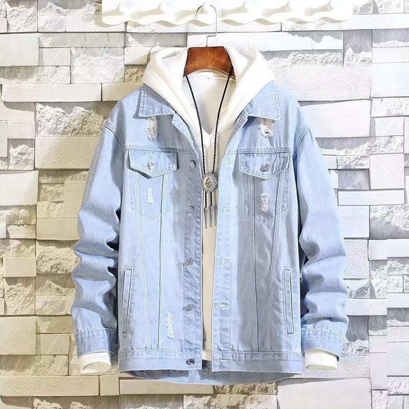 Эта мужская куртка сочетает в себе непринужденный стиль корейской моды с практичными элементами дизайна, что делает ее идеальным выбором как для весны, так и для осени.. Куртка средней толщины, изготовленная из высококачественного хлопка, обеспечивает комфорт в качестве верхней одежды в мягкую погоду.. Куртка имеет модный потертый вид и легкие рваные детали, которые подчеркивают ее современный уличный стиль.. Эта джинсовая бейсбольная куртка с длинными рукавами добавит нотку повседневного стиля, сохранив при этом тепло и стиль.. Идеально подходит для людей, следящих за модой, и легко совмещает повседневную и модную рабочую одежду.