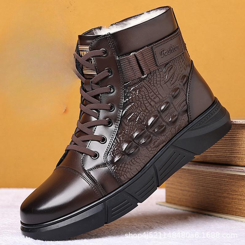 Высококачественные мужские зимние ботинки из натуральной кожи, зимняя обувь из бархата и хлопка, дизайнерские теплые ботильоны из кашемира на шнуровке для мужчин