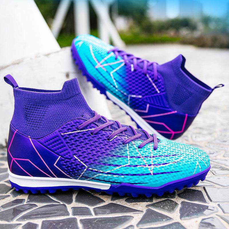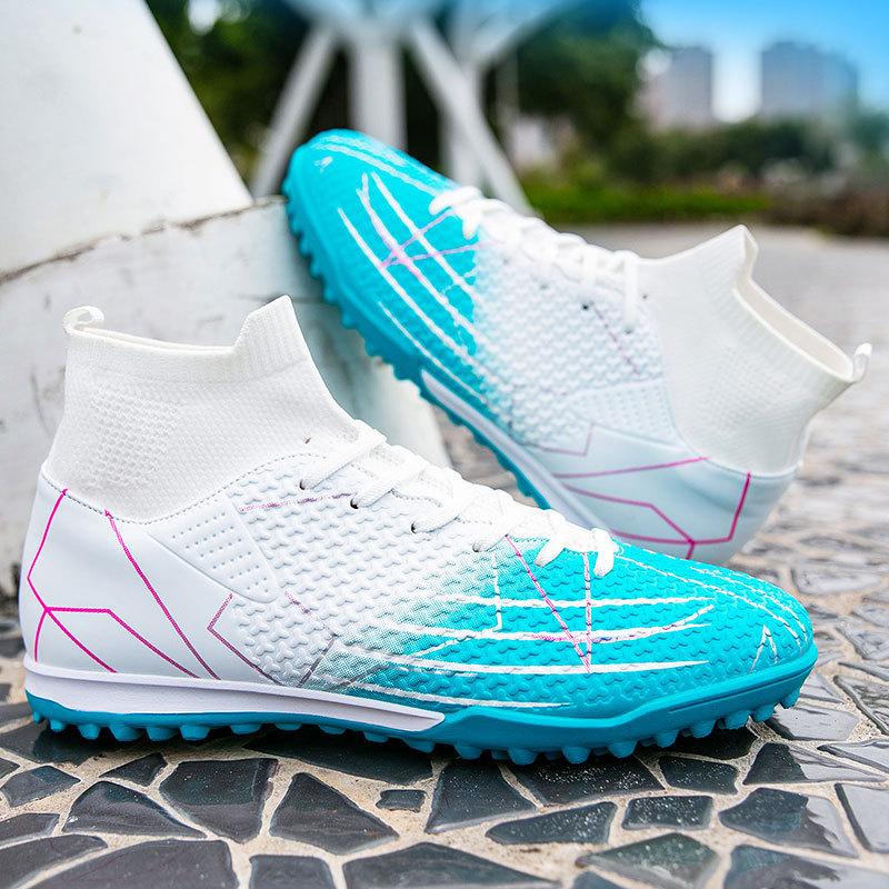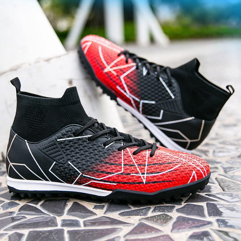 Футбольные бутсы с высоким верхом tf шиповки искусственный газон мальчики девочки подростки студенты кожаные ноги школьные тренировочные бутсы