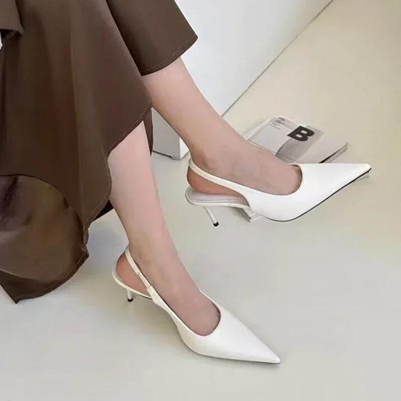 Элегантные туфли на высоком каблуке серебристого цвета для женщин 2025 Летние туфли с открытым носком для вечеринок Женские однотонные босоножки на тонком каблуке для женщин