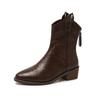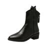 Французские кожаные короткие остроносые ботинки в стиле вестерн, женские туфли на среднем каблуке, облегающие, черные/коричневые, с застежкой-молнией сзади, размер 43