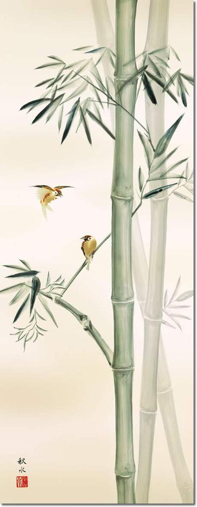 Подвесной свиток круглый год Бамбук и Укита Шусуй маленький подлинный цветок и птица современный подвесной свиток круглый, Воробей, Шакудзан, размер, крепление,
