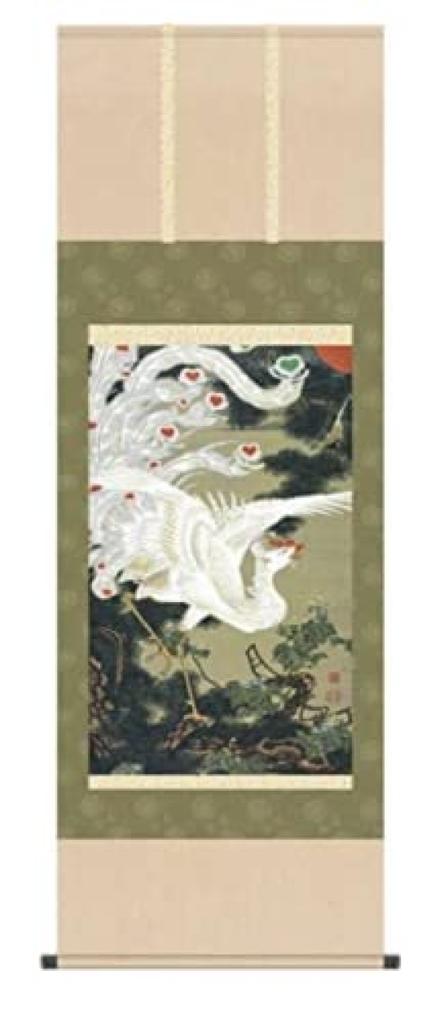 Подвесной свиток Подвесной свиток Ито старая сосна и белый феникс Шедевр Shakugo коробка из павловнии с татами для хранения бумаги Jakuchu, репродукция,