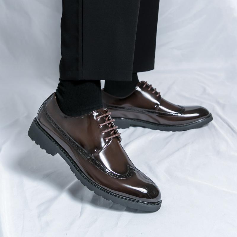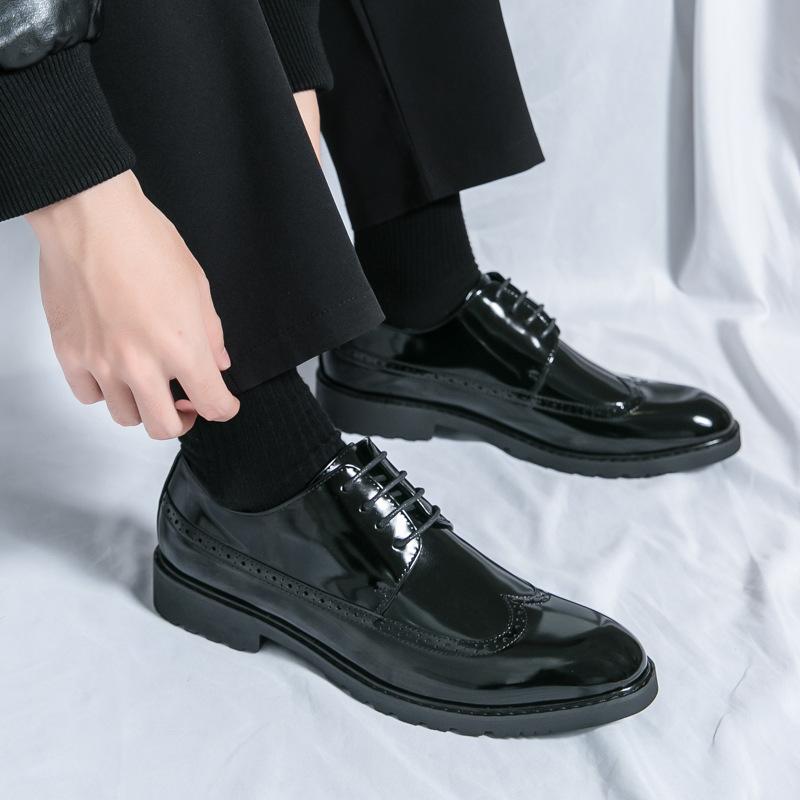 2024 новые лакированные деловые туфли из кожи для мужчин, профессиональная мода, дышащие мужские яркие кожаные модные свадебные туфли