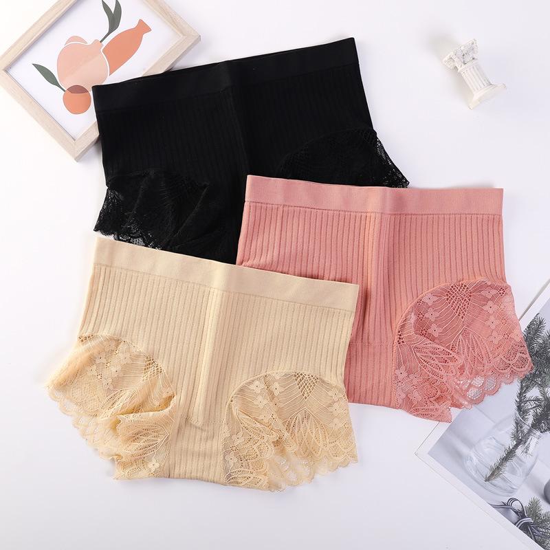 Бесшовные кружевные трусы-боксеры с высокой талией для женщин, сексуальные трусы-боксеры с подъемом бедер