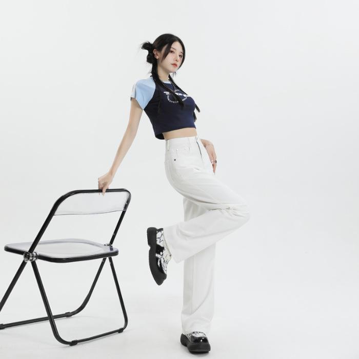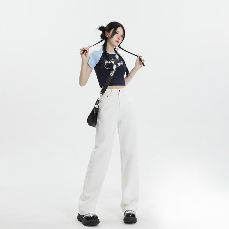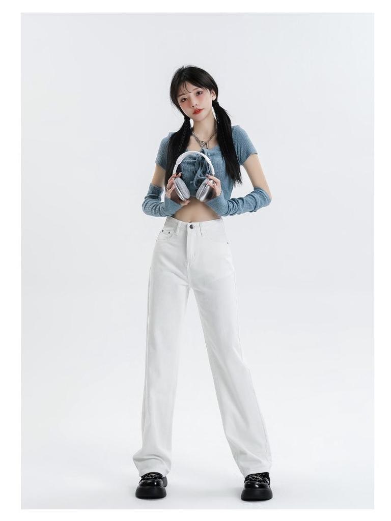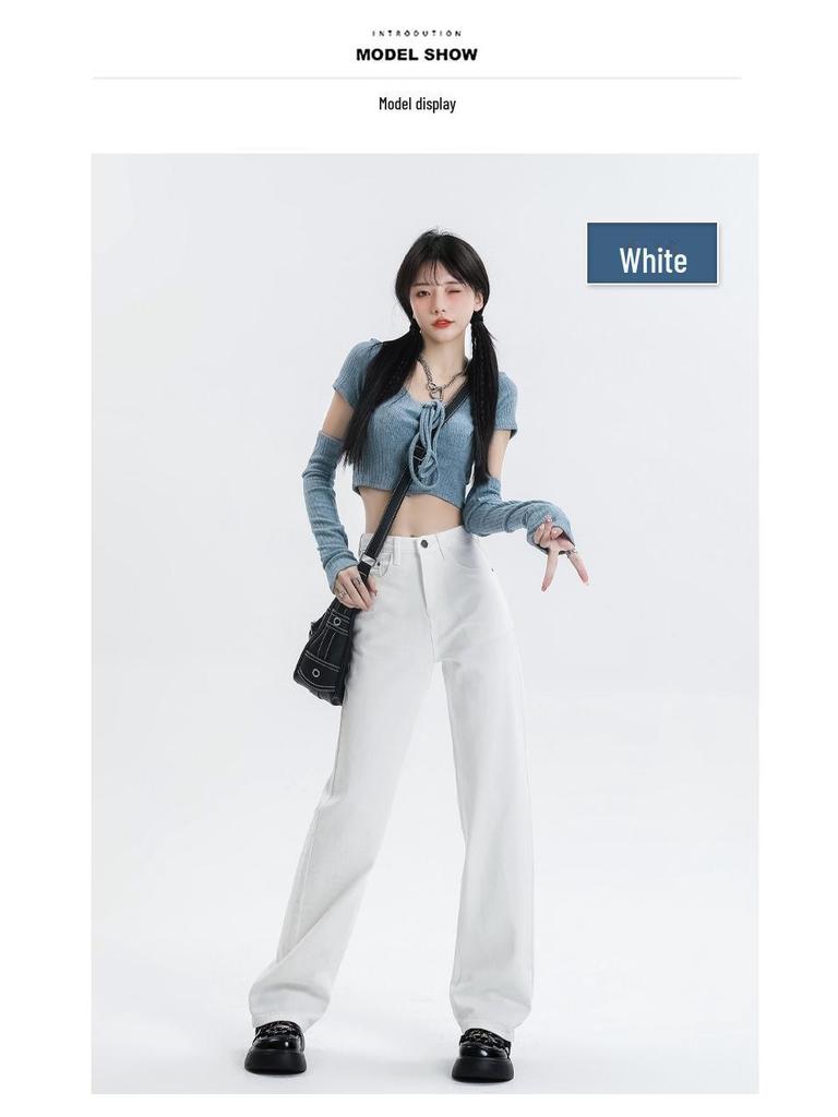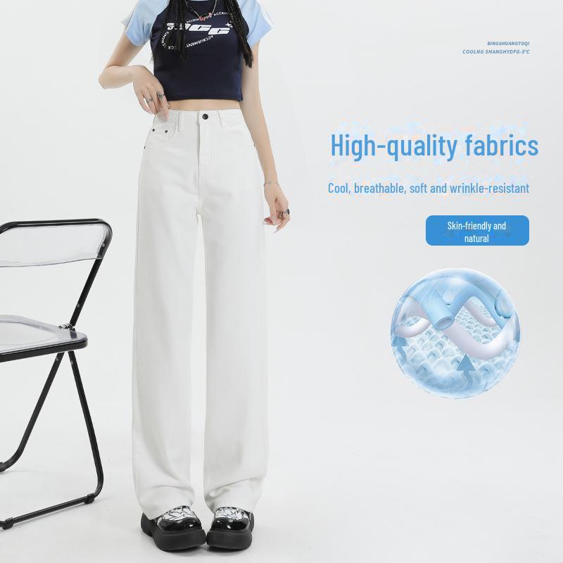 Женские джинсы Tencel белого цвета с высокой талией и широкими штанинами — универсальные, облегающие, повседневные, мягкие, стиль весна/лето