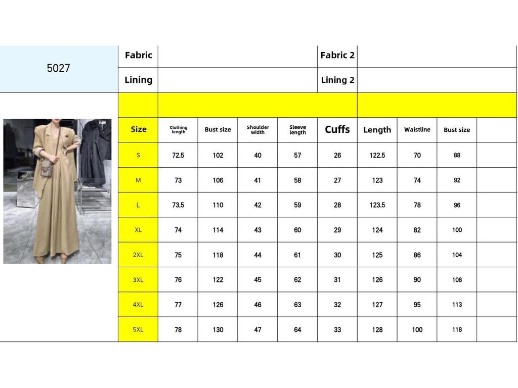 размер: 4XL, Длина одежды: 77см, Размер груди: 126см, Ширина плеч: 46см, Длина рукава: 63см, Манжеты: 32см, Длина: 127см, Талия: 95см, Размер груди: 113см.