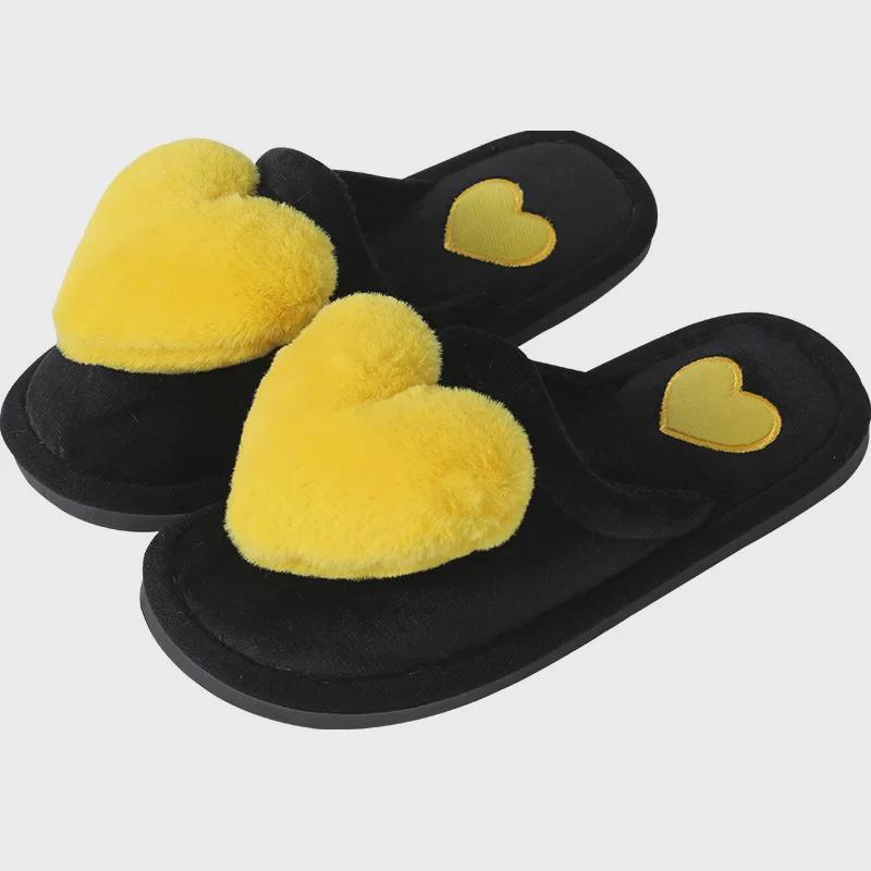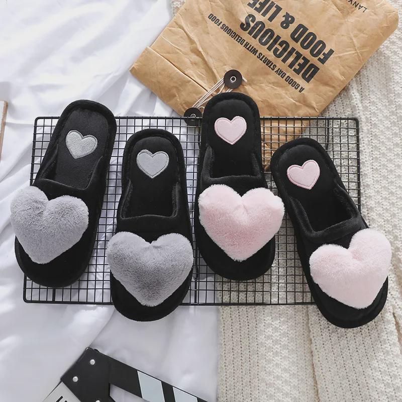 Уютные корейские женские хлопковые тапочки — нескользящие, теплые, с рисунком в виде мультяшного персикового сердца, для осени/зимы.