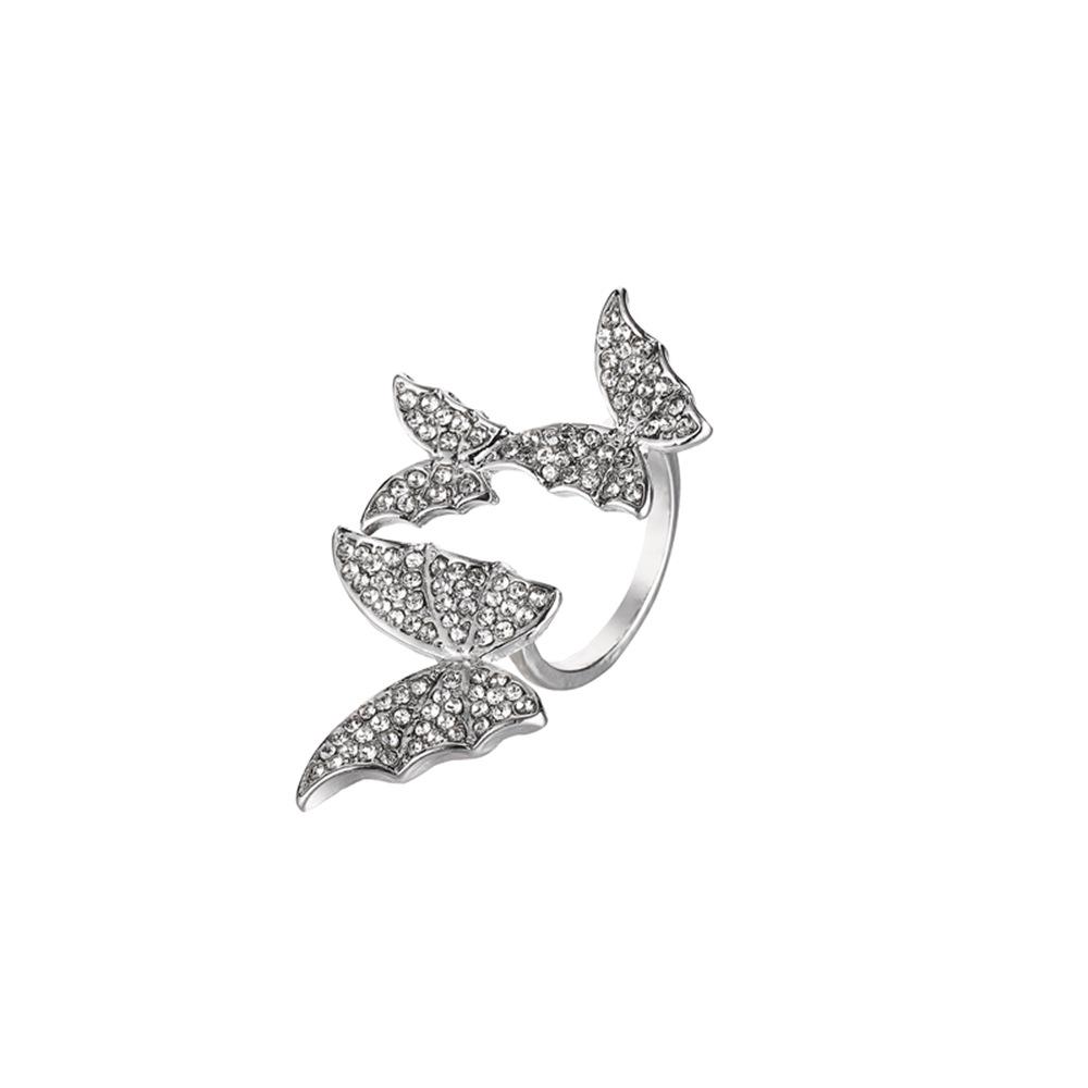 Открытое кольцо в виде европейской и американской бабочки с микроинкрустацией бриллиантами