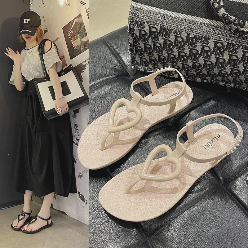 Женские летние сандалии на плоской подошве в форме сердца - повседневные пляжные шлепанцы в стиле феи