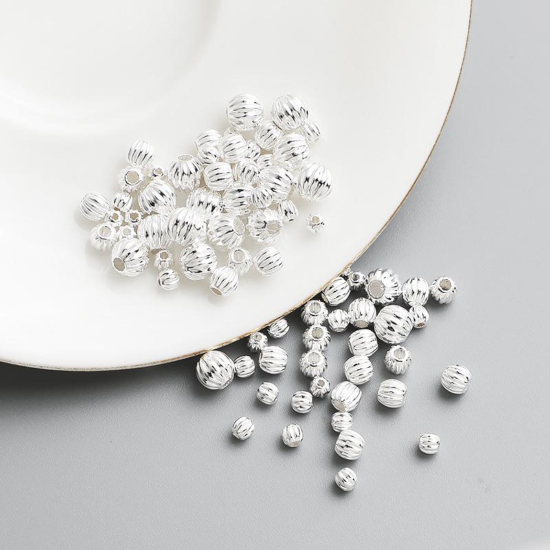 Круглые арбузные бусины-разделители из стерлингового серебра S925 для браслетов и ожерелий своими руками