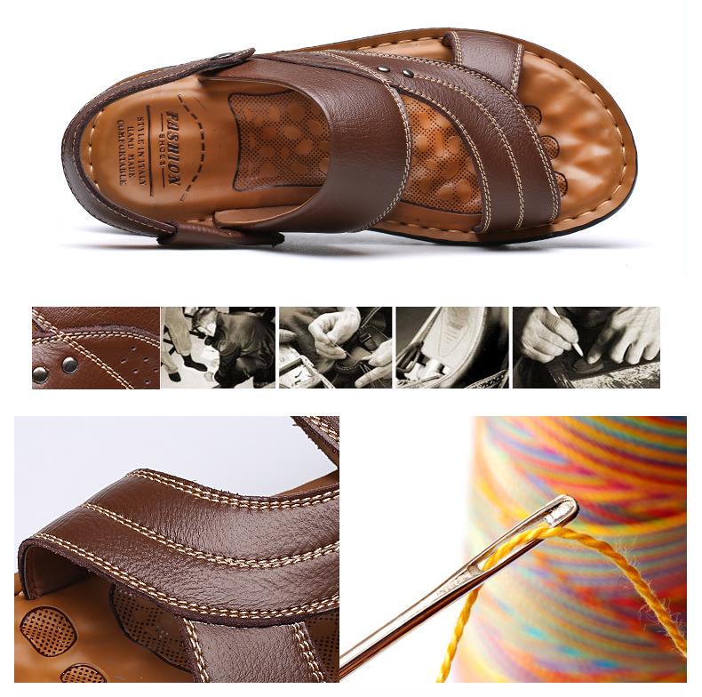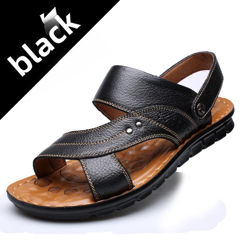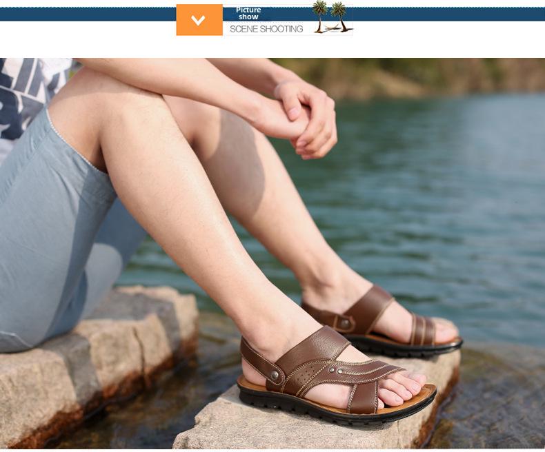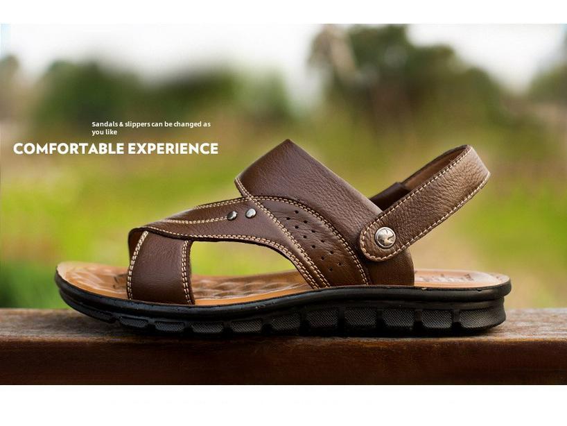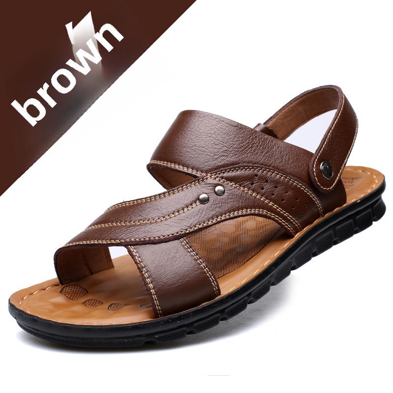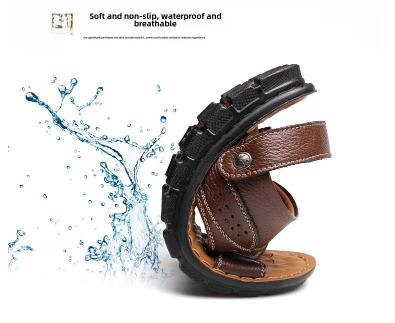 Летние мужские кожаные сандалии 2025 года — повседневная пляжная обувь и модные тапочки