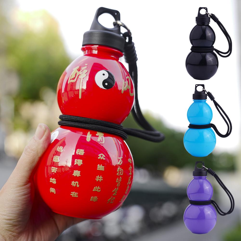 Бутылка для питья из тритана в китайском стиле, бутылка для воды в форме тыквы с плечевым ремнем, плетеная поясная веревка, щеточная подвеска для чашки, наклейка своими руками