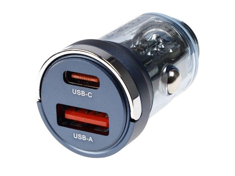 WAYME Charger 12/24V, USB 18W + USB-C PD 33W, with ring, transparent blue — купить товар онлайн с бесплатной доставкой по всему миру!
