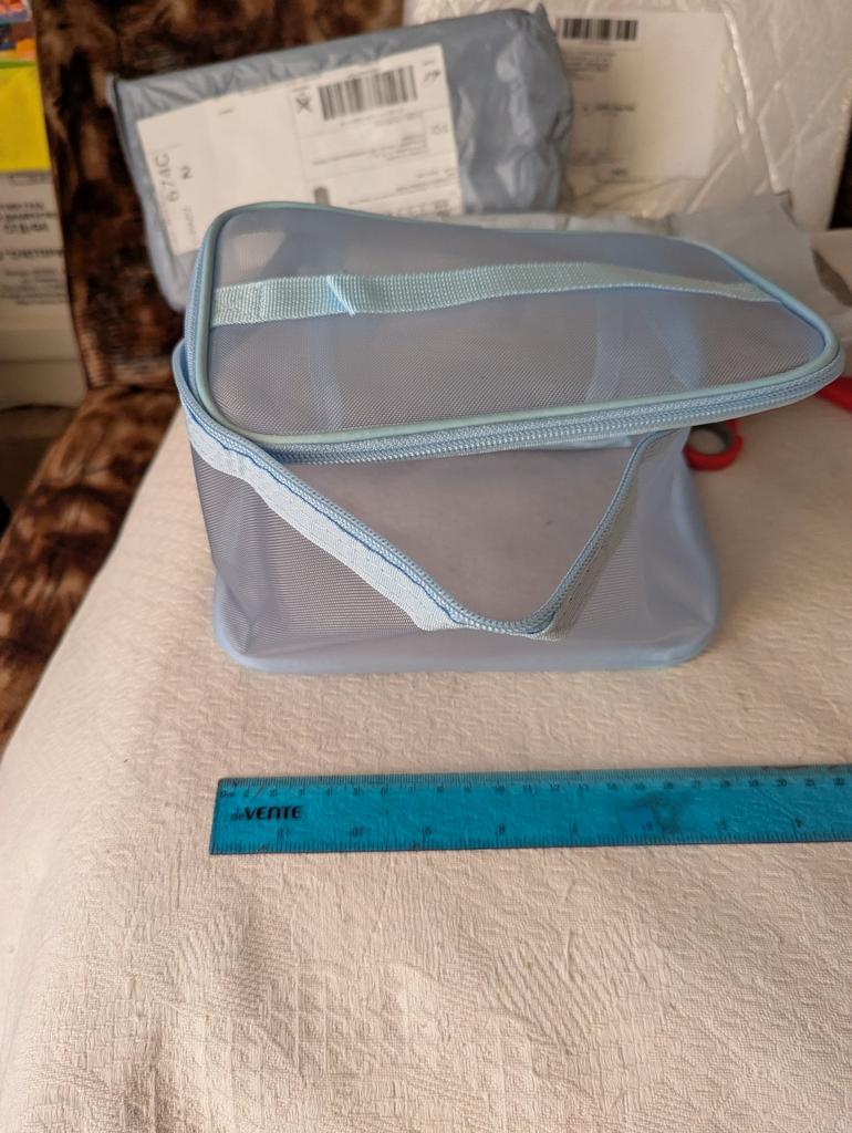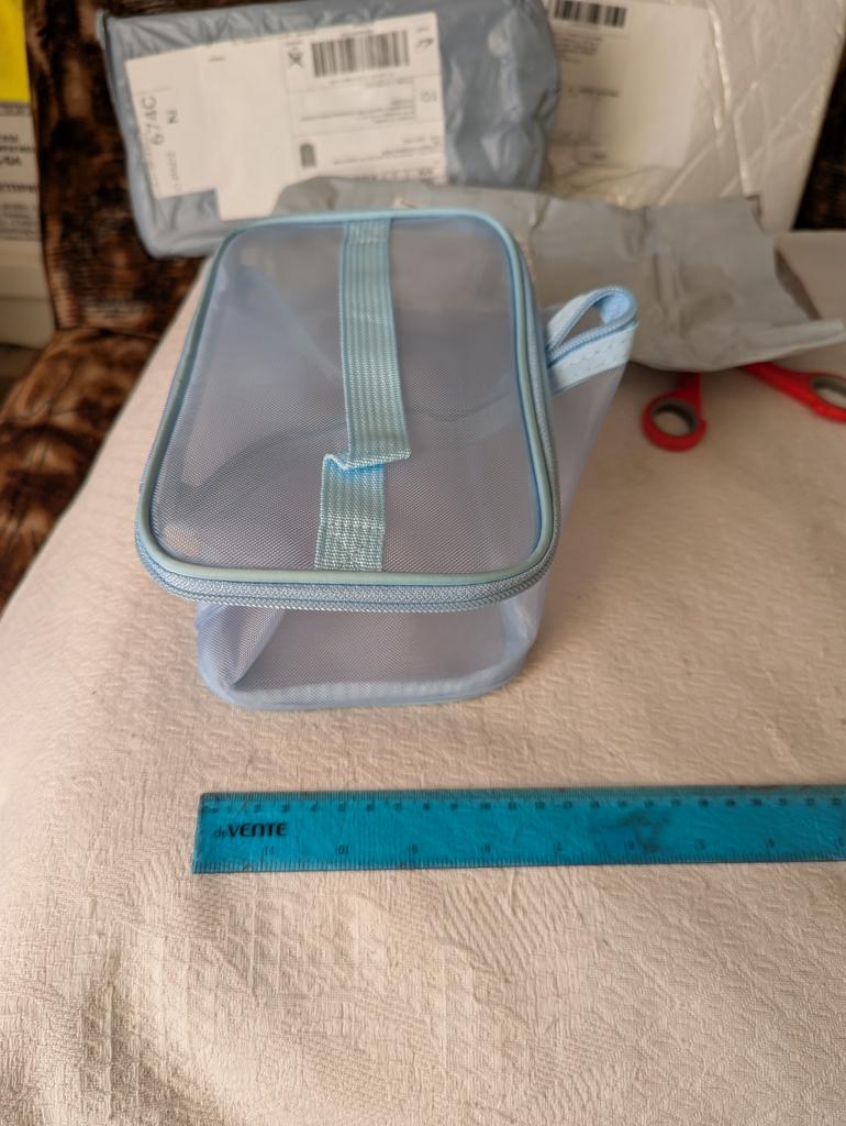Доставка очень быстрая 11.10 была отправка,пришла 25.10 косметичка хорошая но не вместительная на фото она выглядит больше. Запаха нет, ленточка не прошита. Продавцу спасибо.