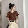 2025 г. Корейские свободные рубашки с круглым вырезом и коротким рукавом в стиле конфетного цвета для женщин