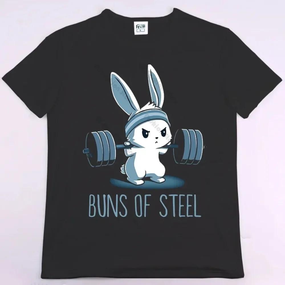 Футболка с круглым вырезом BUNS OF STEEL Rabbit Fitness Funny Gym Rat Bodybuilding унисекс повседневная футболка с коротким рукавом большого размера унисекс