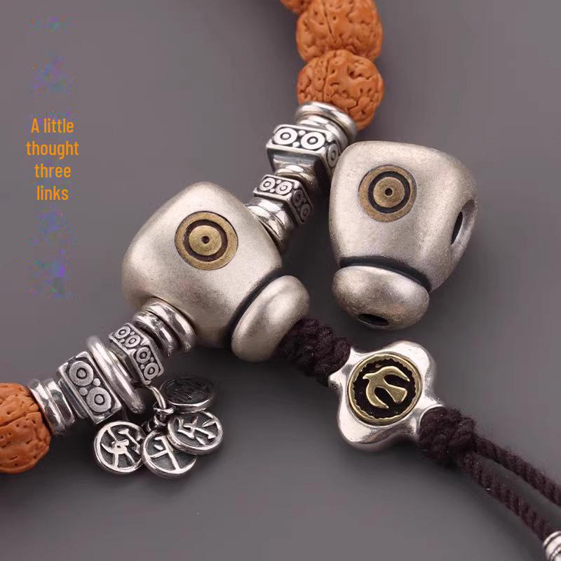 Ретро-браслет в форме сердца с матовым узором, тибетским Буддой, медной каплей воды и разделительными бусинами