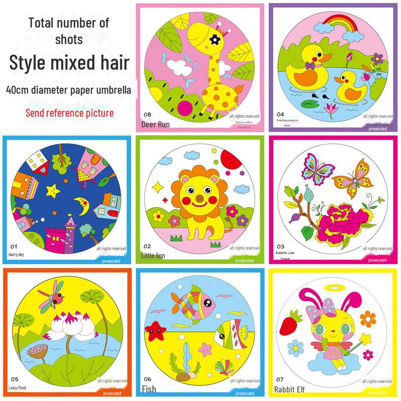 Детский зонтик из чистой бумаги для самостоятельной росписи поделок — большой, средний и маленький размеры для детского сада и начальной школы.