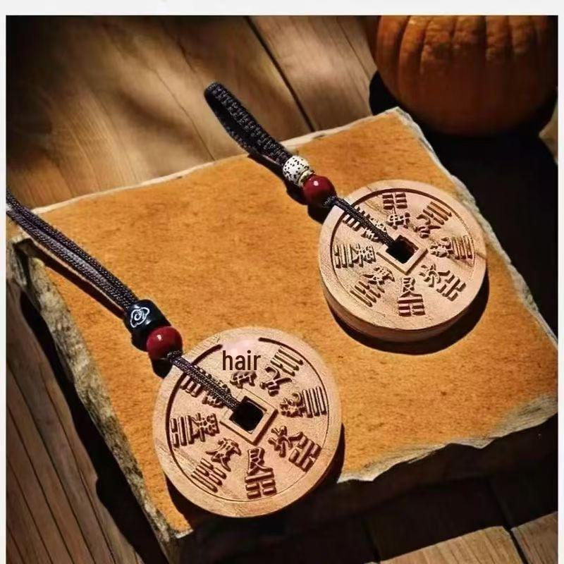 Ожерелье и брелок с подвеской в виде монеты-призрака из персикового дерева для мужчин и женщин