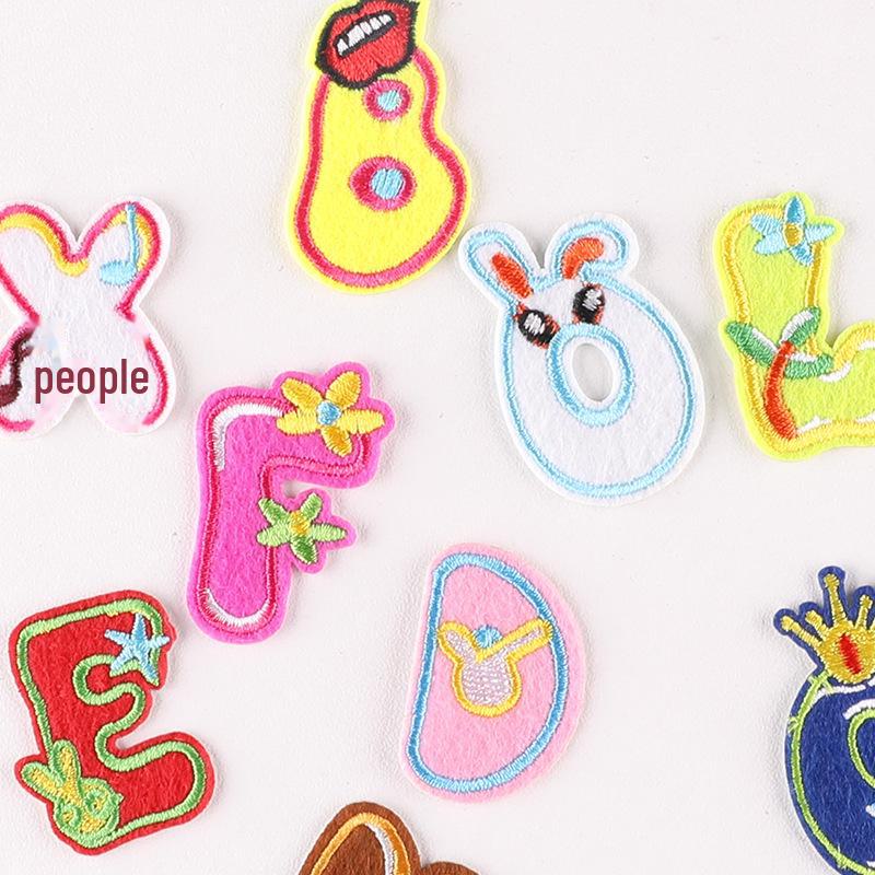 Наклейки для вышивки Duoku: Английские буквы, мультяшные животные, самоклеящиеся заплатки для блокнотов и аксессуаров одежды.