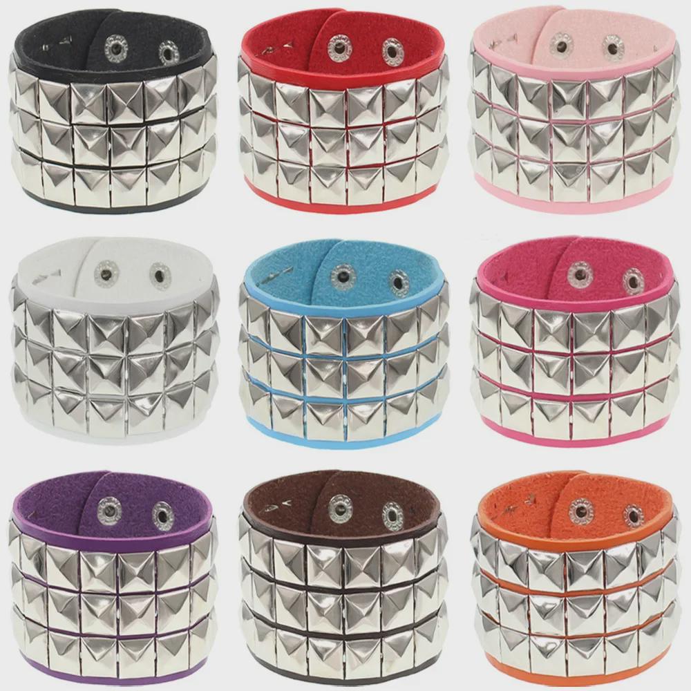 Европейский и американский панк-браслет из кожи с квадратными заклепками и тремя рядами — купить товар онлайн с бесплатной доставкой до всему миру!