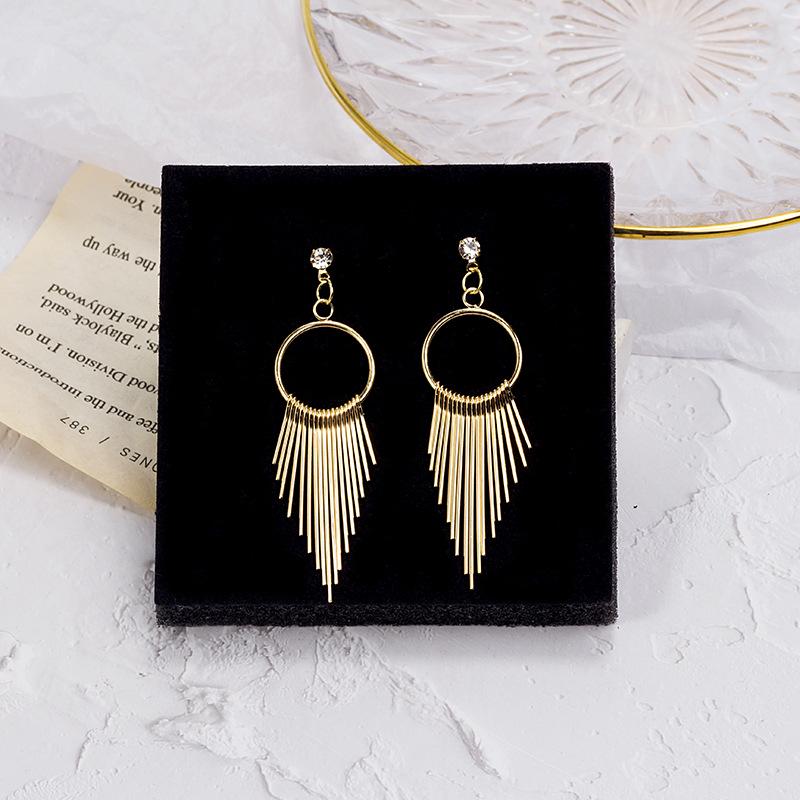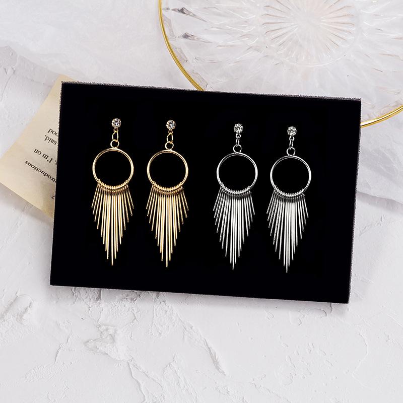 Модные европейские и американские геометрические длинные серьги с кисточками из металла и бриллиантами - преувеличенный ретро-дизайн