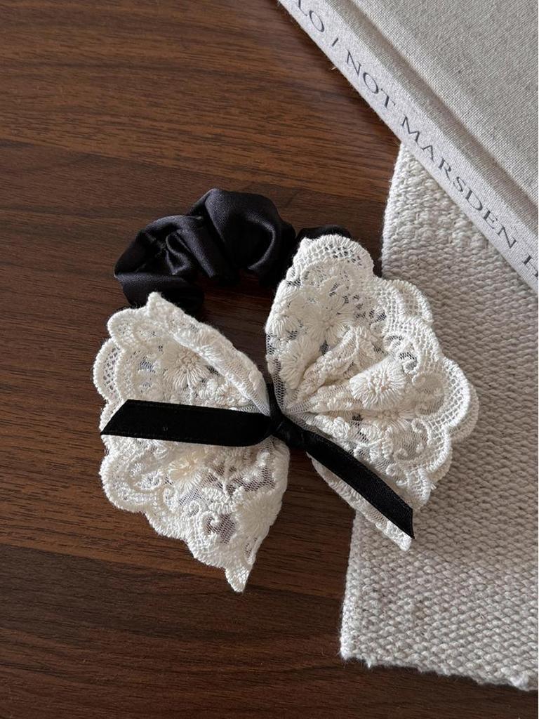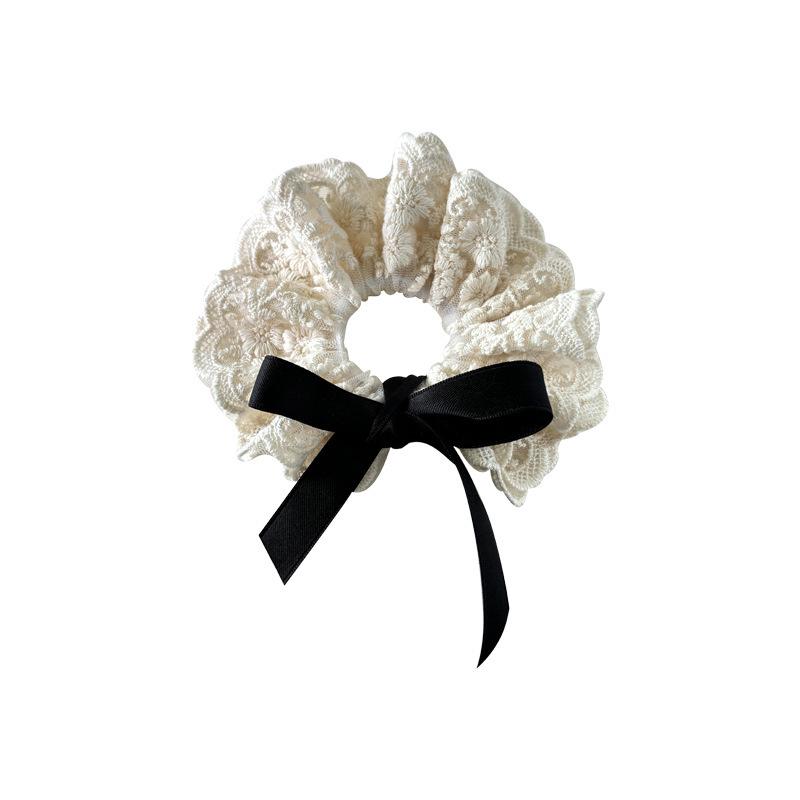 Двухслойное французское кружевное кольцо для волос в стиле ретро с бантом - модный аксессуар для волос в виде цветка 2024 года