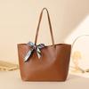 Модная сумка-тоут большой вместимости с рисунком личи и украшением в виде шарфа - однотонная женская сумка через плечо, выпуск 2024 г.