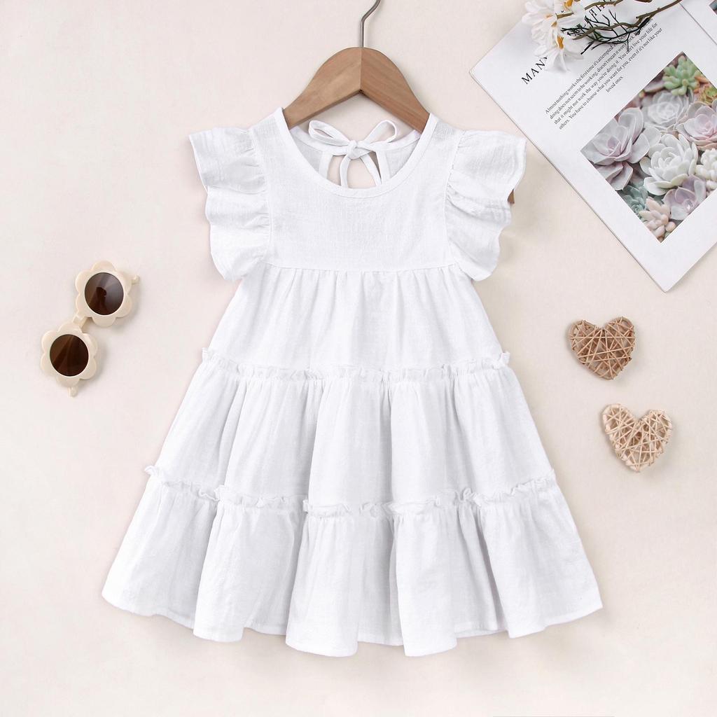 Это очаровательное платье для девочки с очаровательными рукавами-крылышками идеально подходит для создания элегантности и стиля в летние месяцы.. Изготовленный из мягкого и дышащего хлопка, он обеспечивает комфорт вашему малышу, не стесняя при этом движений.. Идеально подходящее для любого случая, это цельное платье сочетает в себе стиль и практичность, что делает его обязательной вещью в гардеробе вашего ребенка.