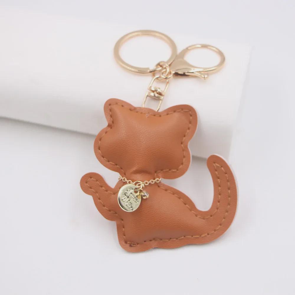 Очаровательный кожаный брелок в виде котенка - подвеска в виде счастливого кота для сумок и автомобилей