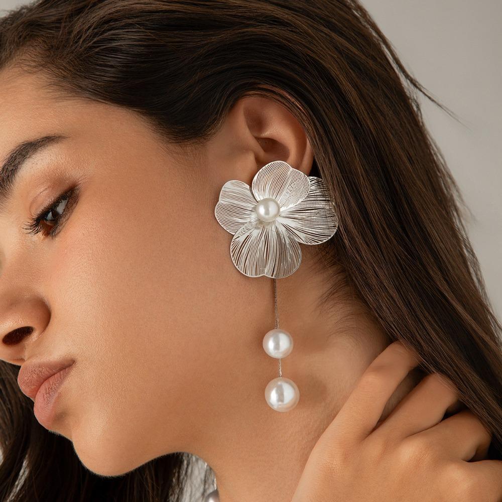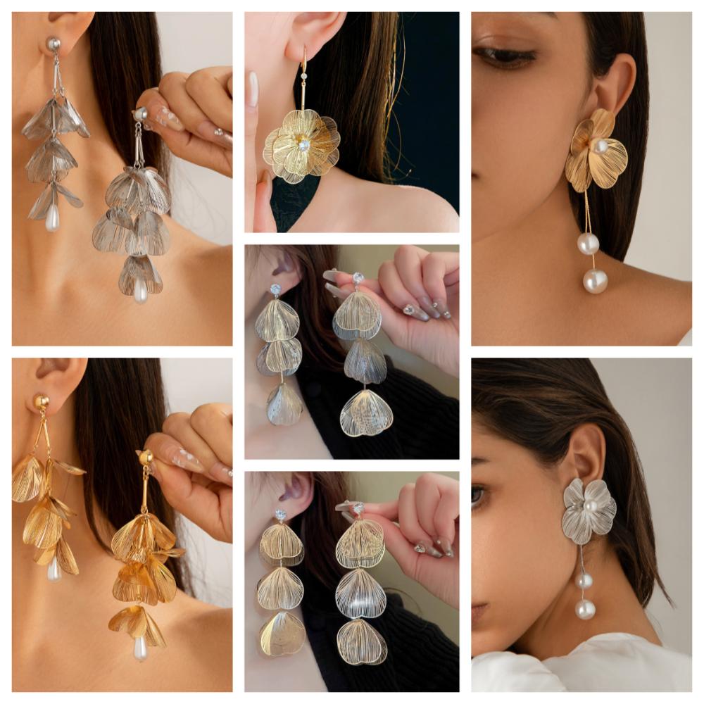 Trendy Flower Long Hanging Earrings Retro Ginkgo Leaf Hollow Earrings Petal Earrings Studs Hipster