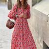 Летнее трендовое платье с геометрическим узором и рукавами-фонариками 2022 года, женская мода больших размеров.