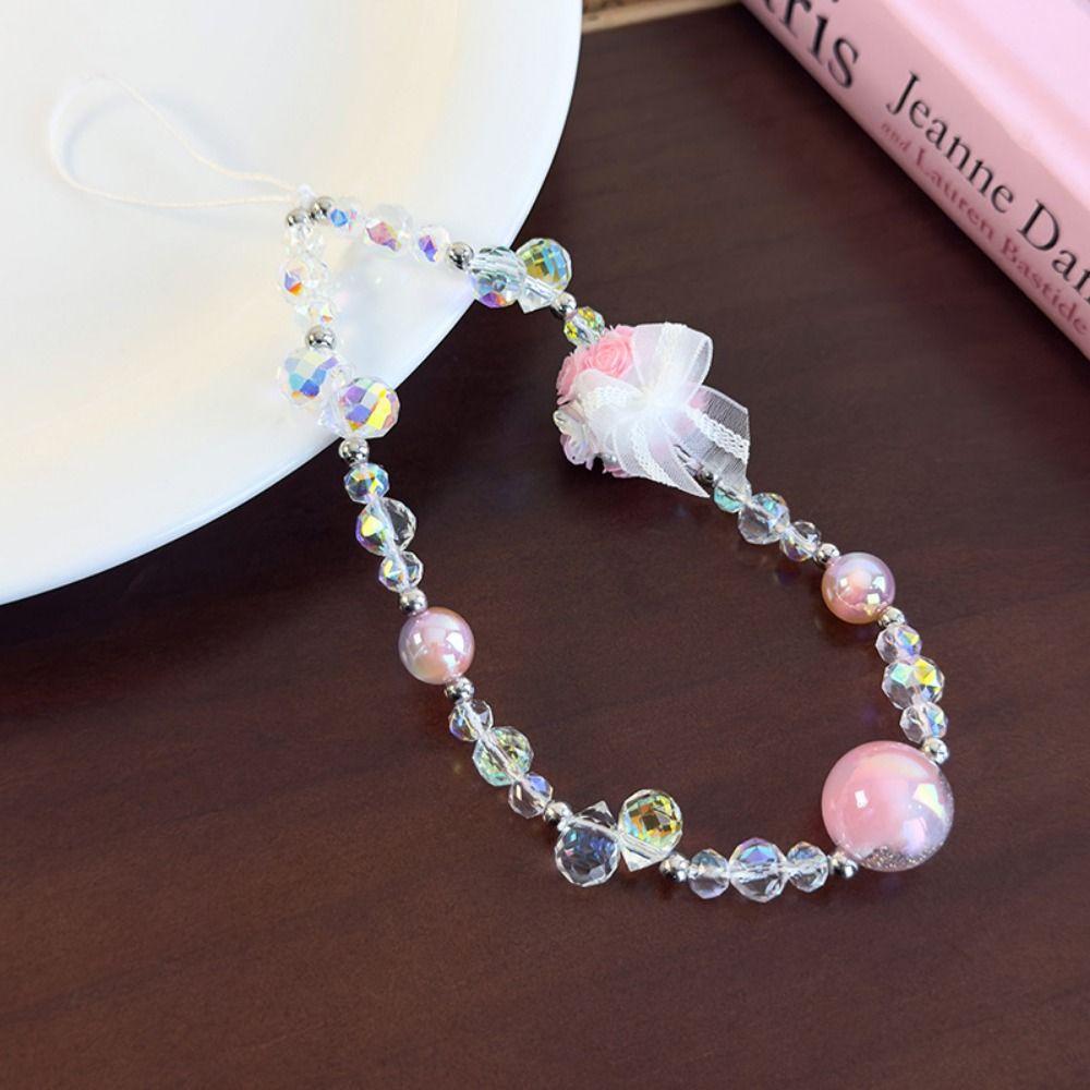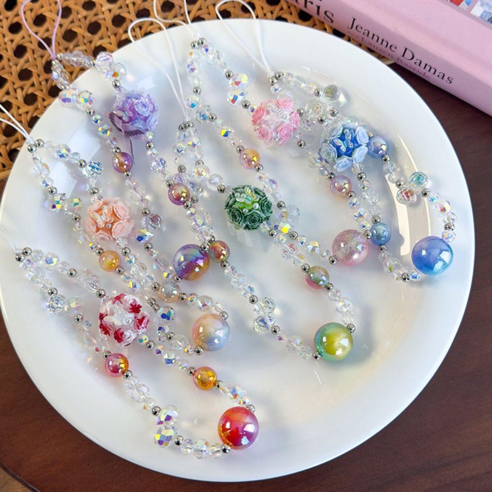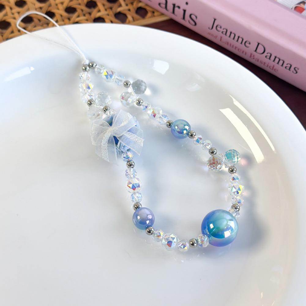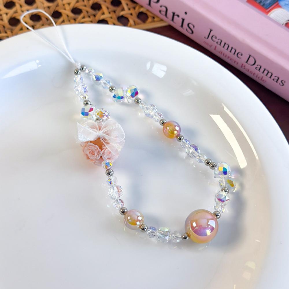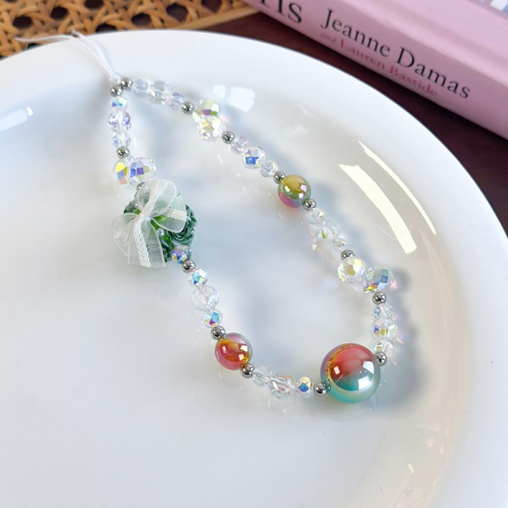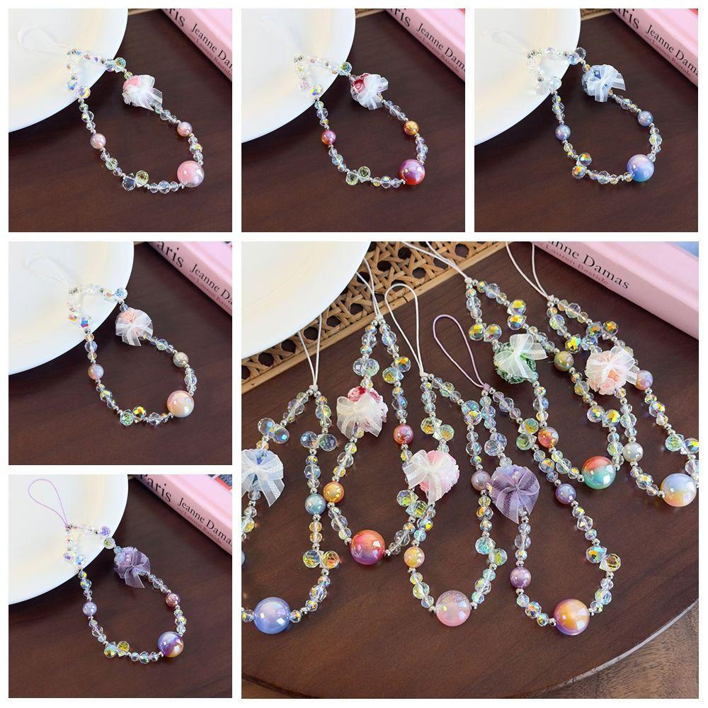Beaded Bow Phone Case Lanyard Anti-lost Colorful Ball Beaded Phone Strap DIY Decor