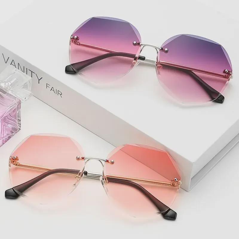 Новые женские солнцезащитные очки без оправы с полигональной огранкой и защитой от ультрафиолета — купить товар онлайн с бесплатной доставкой по всему миру!