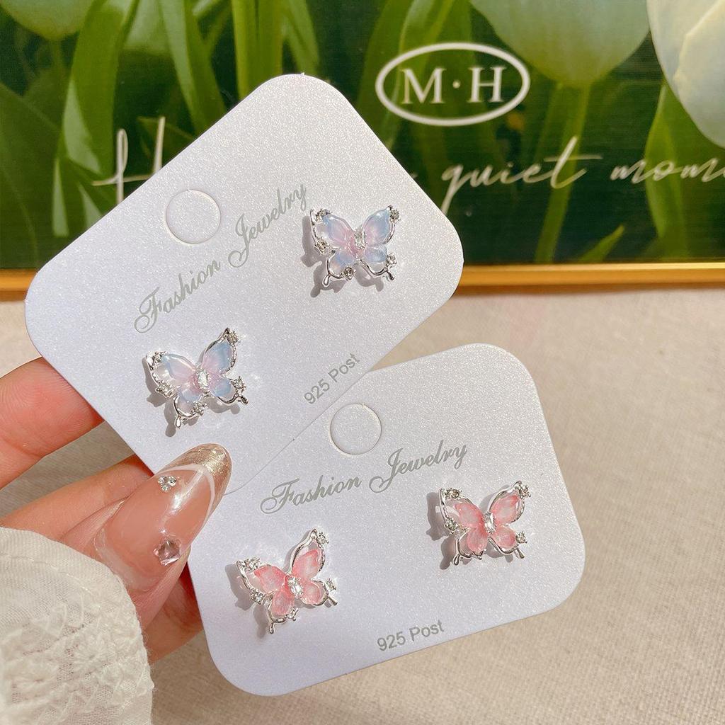 Серьги-бабочки с синим и фиолетовым градиентом: Элегантная серебряная игла, полая, милый 3D-стиль для женщин