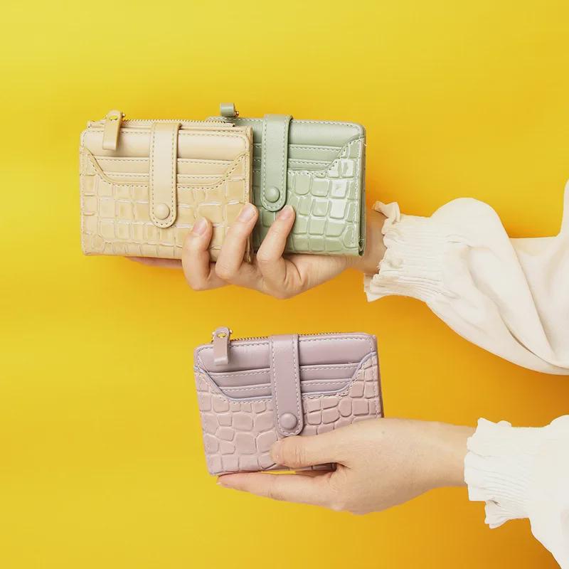 Женский кошелек высокого класса с каменным узором 2024 года: Короткий, однотонный, многофункциональный кошелек для монет с отделениями для карт.