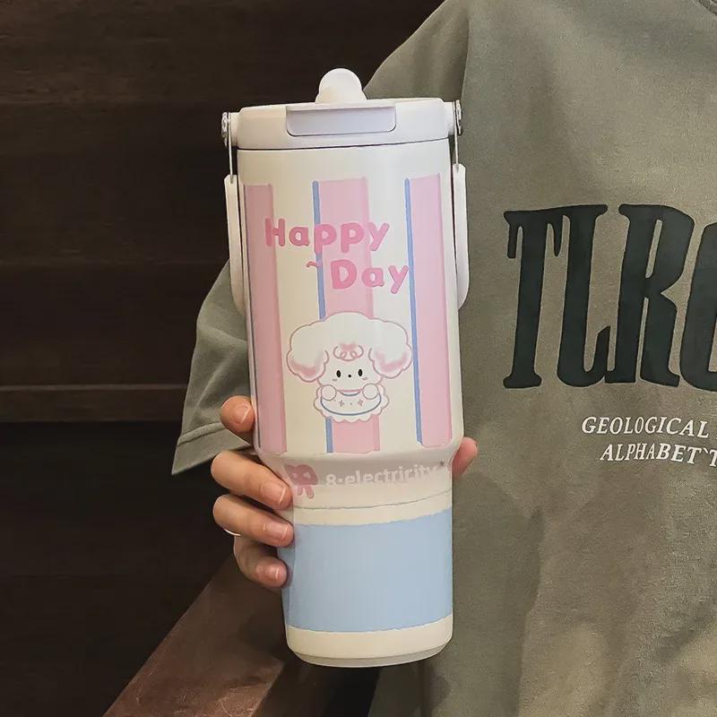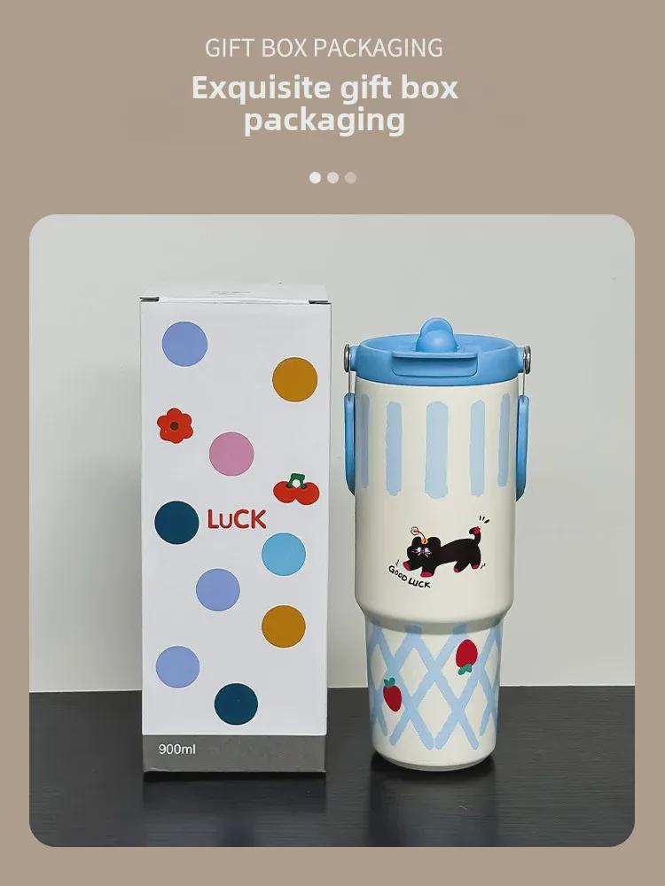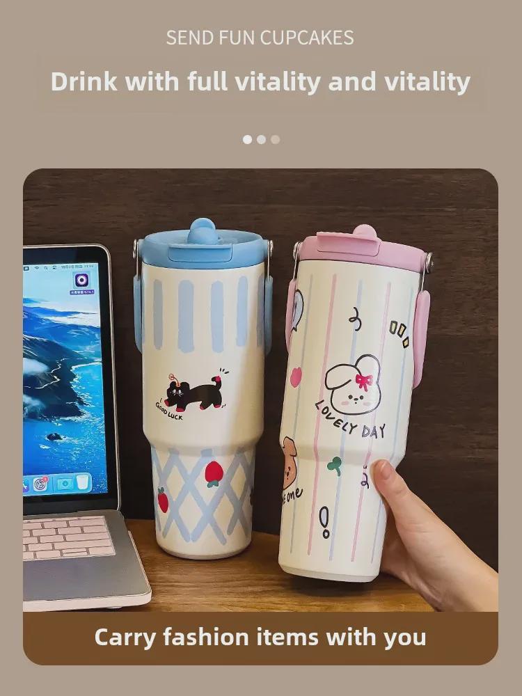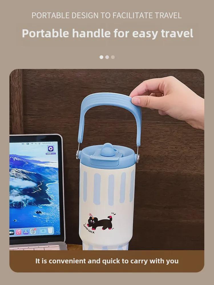 Стильная большая термокружка с трубочкой 2024 года для девочек — идеально подходит для путешествий и школы