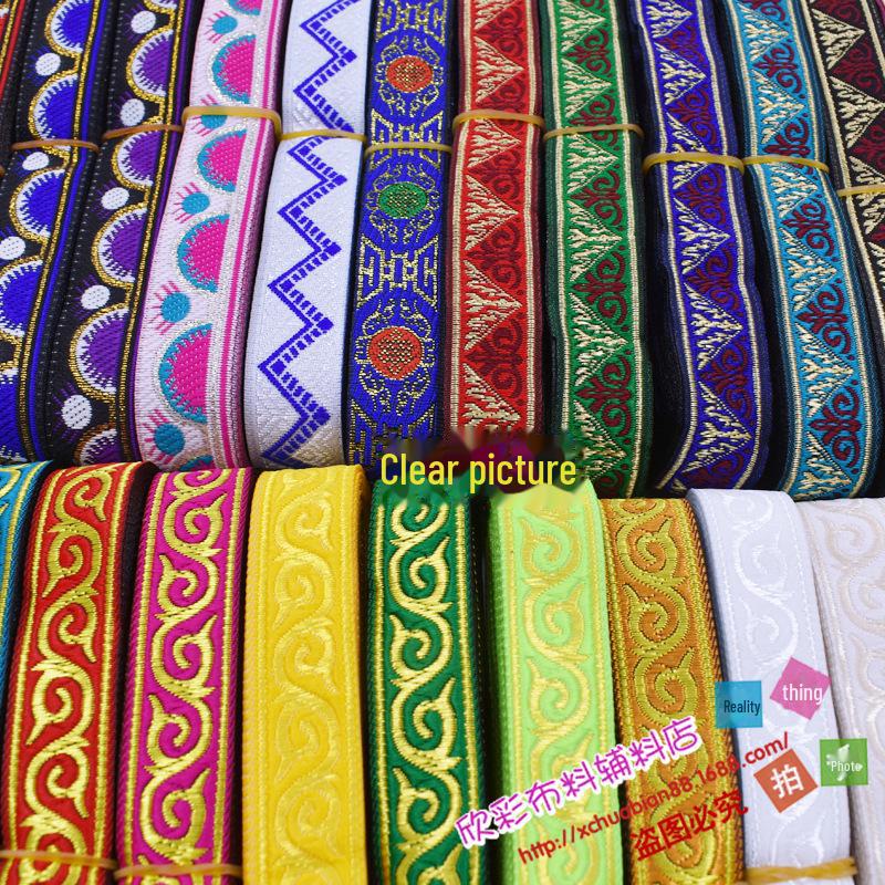 Этническая кружевная жаккардовая вышитая лента, красная, 2 см - аксессуар для сценических выступлений и одежды для DIY