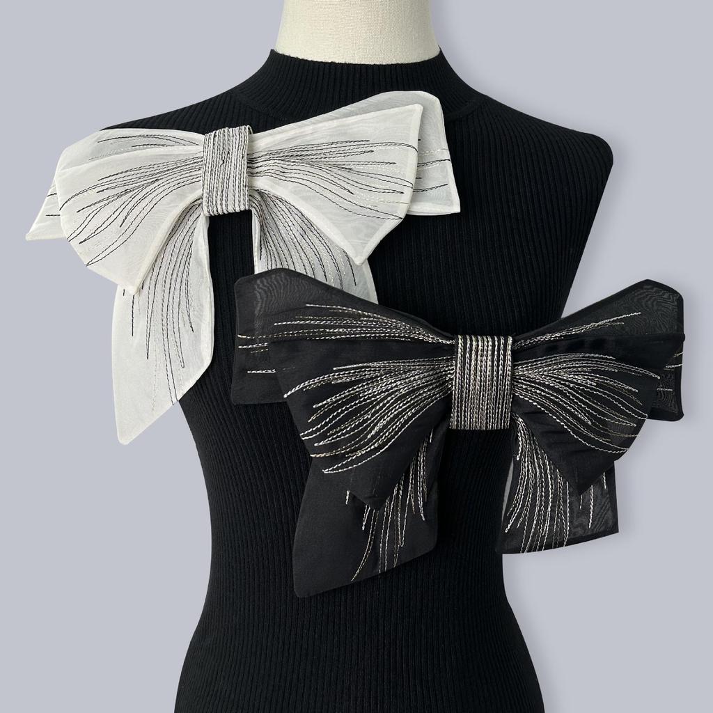 2023 Модная двухцветная вышитая 3D-кружевная нашивка с бантом для женской одежды