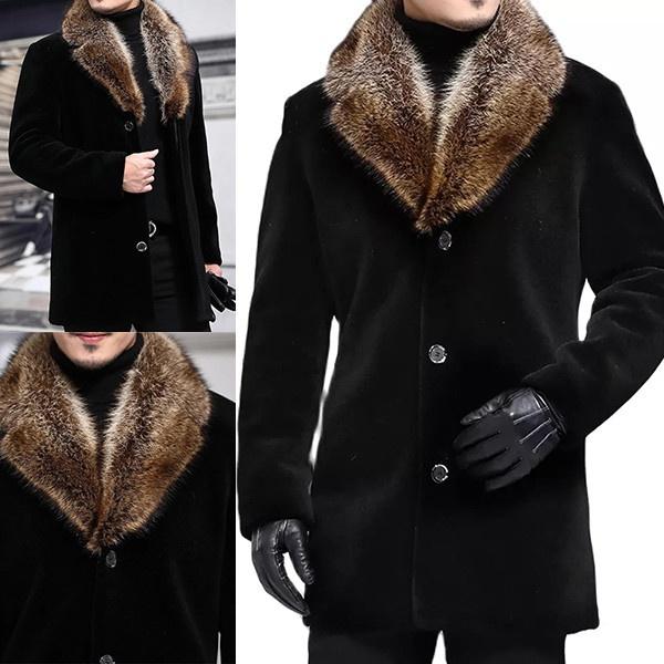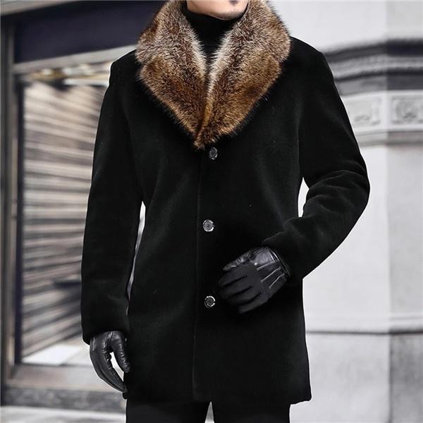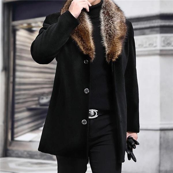 2021 зимнее мужское длинное шерстяное пальто с меховым воротником, мужское однотонное тонкое повседневное ветровка, куртка, верхняя одежда, черный топ, большие размеры S-5XL