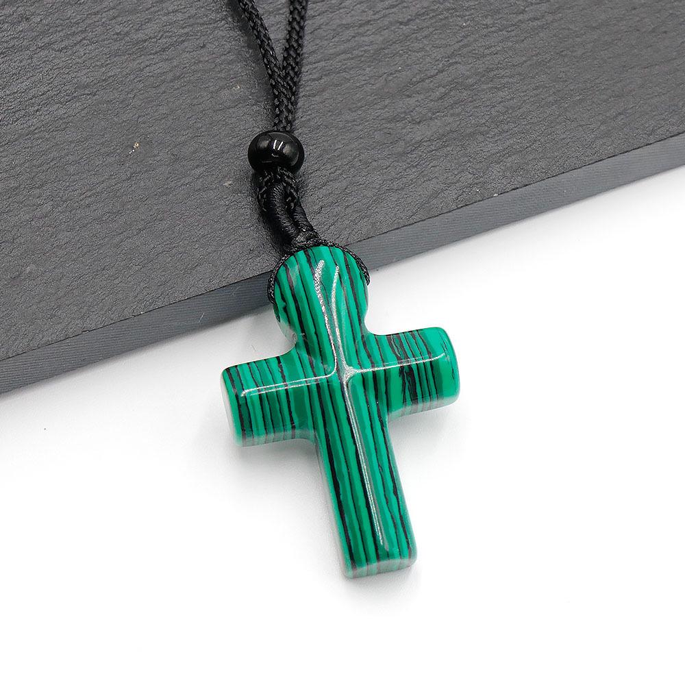 Ожерелье с крестом из агата и кристаллов - цепочка для свитера с полудрагоценными камнями, идеальный подарок на День благодарения.