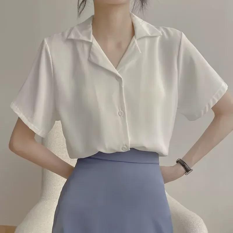2023 Женская рубашка в стиле ретро в корейском стиле колледжа с короткими рукавами и воротником