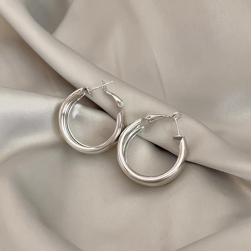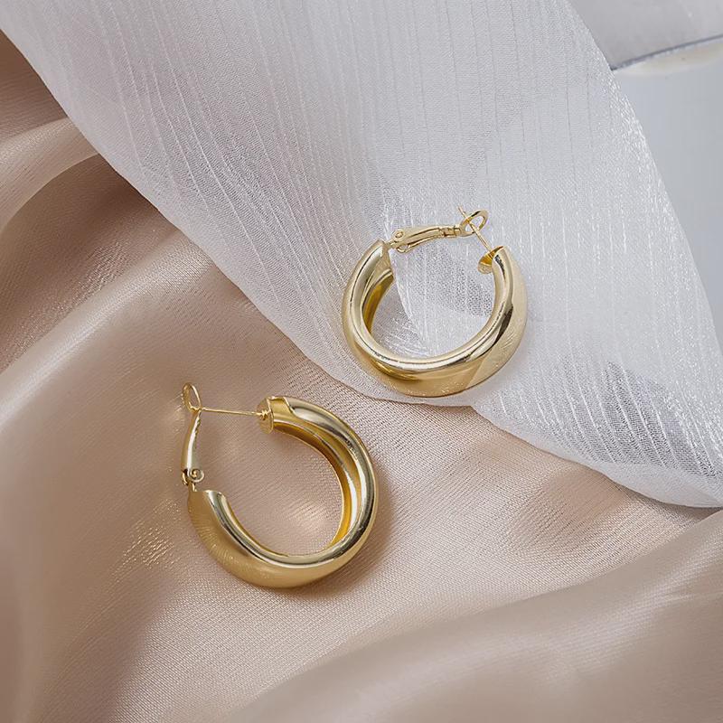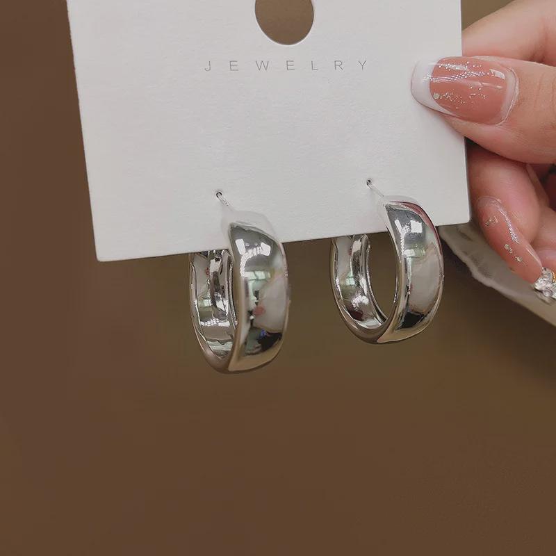 Широкие серебряные и золотые металлические серьги-кольца с креативным, холодным дизайном для женщин